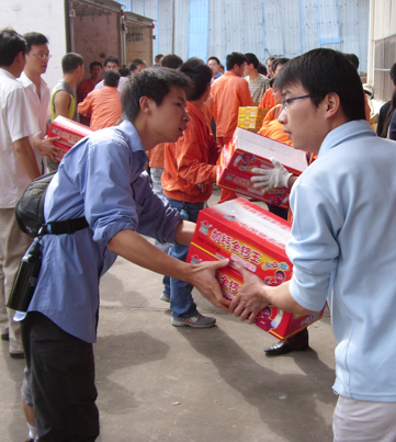 金鑼人用雙手托起一輪火紅的太陽